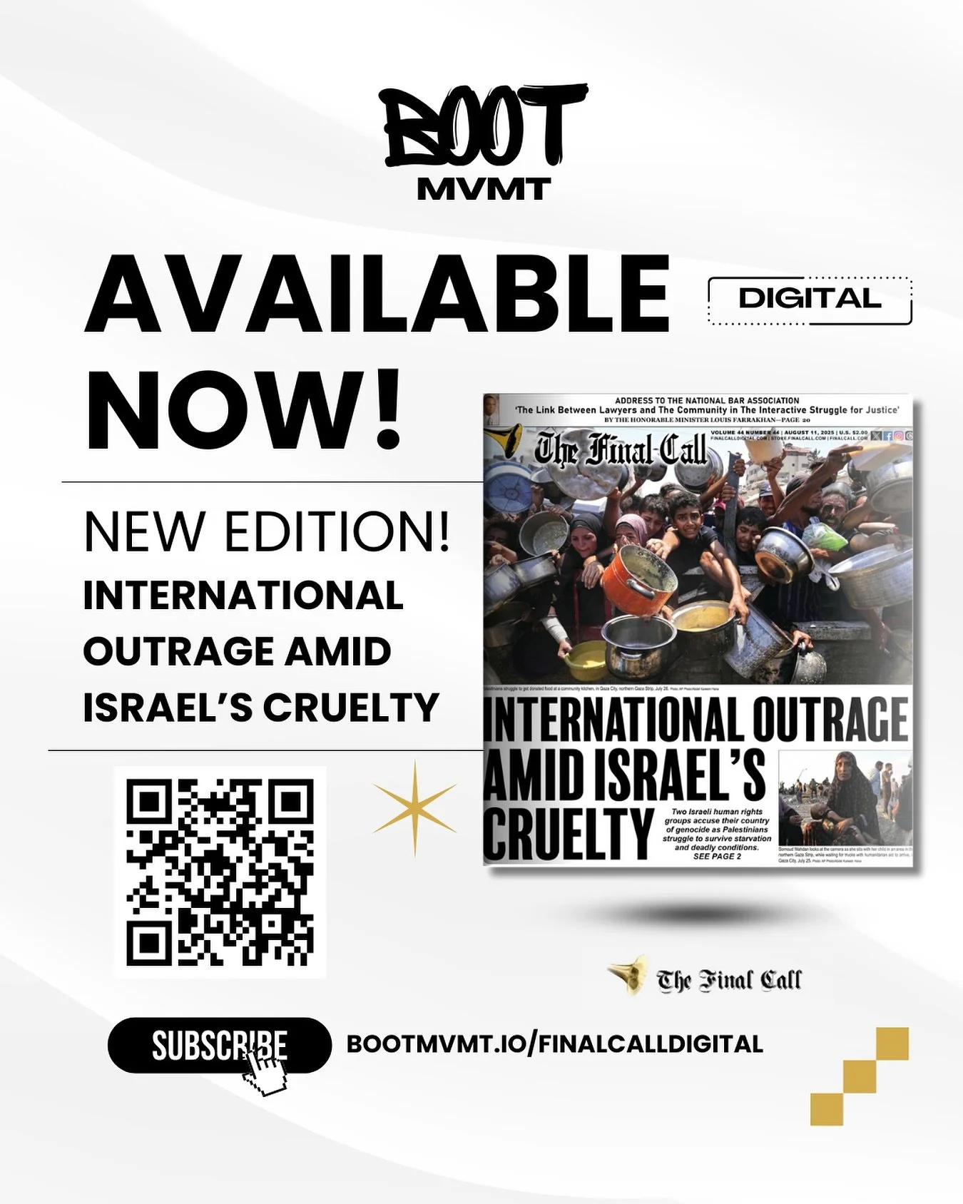 For only $9.99/month, you can help us power innovation with your subscription to BOOT Media! Get EXCLUSIVE access to BOOT MVMT media content, news, updates, AND our digital collaboration with the Final Call Newspaper.